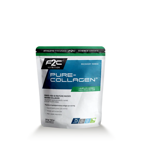 F2C Pure-Collagen is your daily clean source of clean, grass fed and pasture raised bovine collagen. Collagen is a crucial protein – the most plentiful in the human body. It accounts for about 25-35% of your body’s total protein. It is the primary building block of your body’s skin, muscles, bones, tendons, ligaments, and other connective tissues. Natural collagen production is at its highest when we are young and begins to drop as we age. Containing 8 of the 9 essential amino acids, supplementing with hydrolyzed collagen provides many benefits. When you choose F2C Pure-Collagen you give your body support to protect your muscles and joints, improve bone health, skin and injury repair