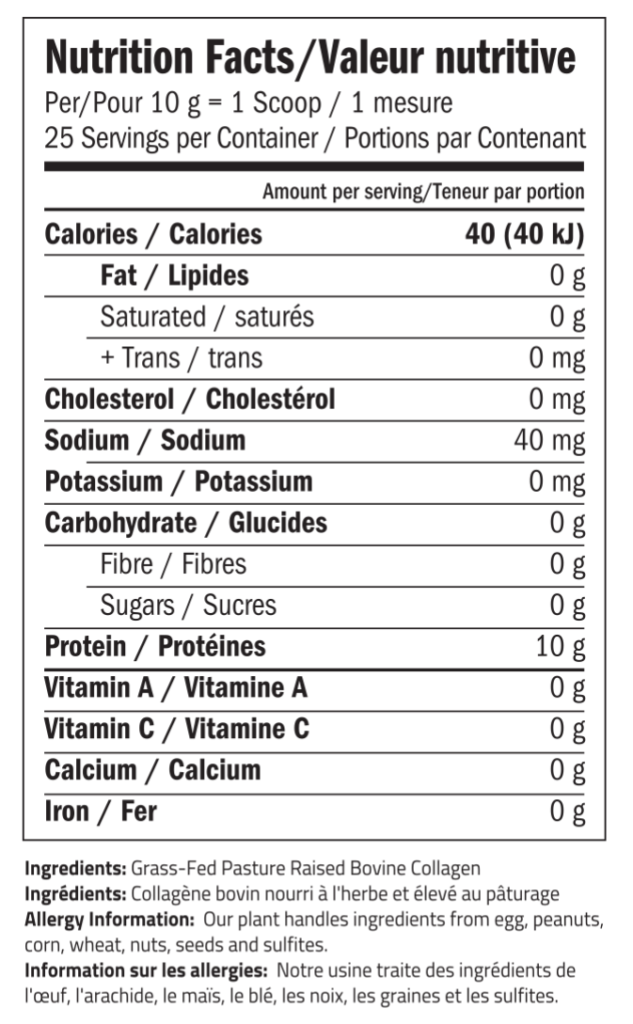 Pure-Collagen™ is free from all artificial flavours, colours, sweeteners and preservatives. It is gluten free and dairy free